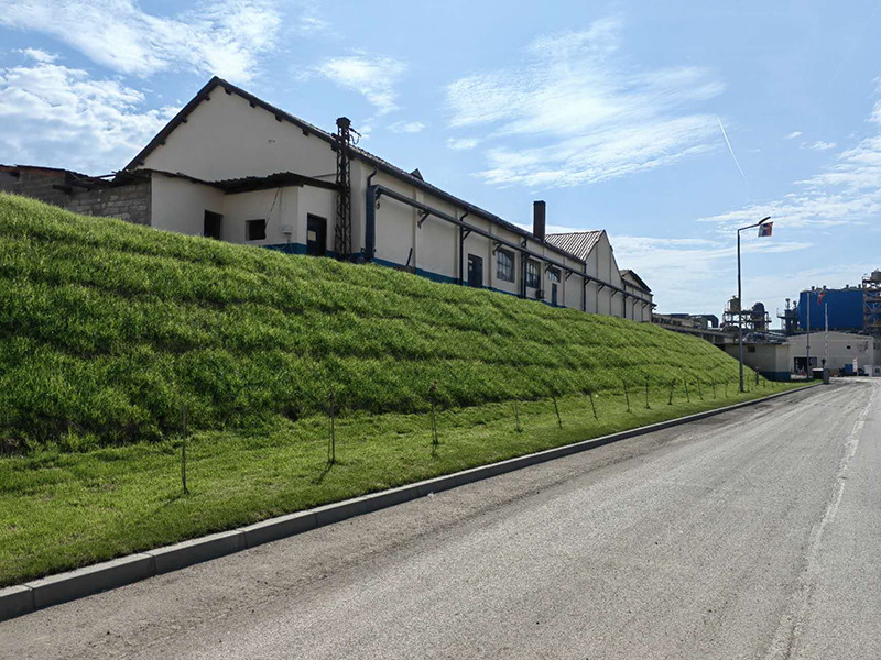 Revegetated slope within the smelter now operated by Serbia Zijin Copper